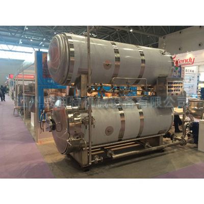 雙層水浴殺菌鍋可以短時間滅菌;采用熱水循環進行殺菌,熱水罐高溫水注入釜內,減少處理水和熱量消耗縮短了滅菌時間,提高了工作效率。