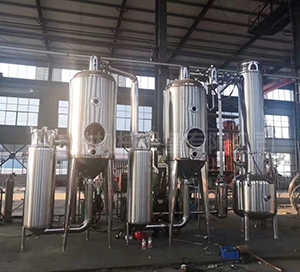 雙效濃縮器采用外加熱自然循環與真空負壓方式,蒸發速度快,濃縮比重大。液料在全密封中無泡沫濃縮,用本設備濃縮出來的藥液,具有無污染,藥味濃。清洗方便。